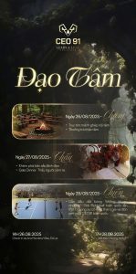 Lần này, CEO91 kết hợp cùng Decor – Media top 1 Sài Gòn, mang đến một sự kiện đẳng cấp tại Villa top 1 Đà Lạt. Từng khâu tổ chức đã được chuẩn bị chu đáo, sẵn sàng chào đón các CEO91 trên toàn quốc hội tụ trong hành trình 3 ngày với chủ đề Đạo Tâm.