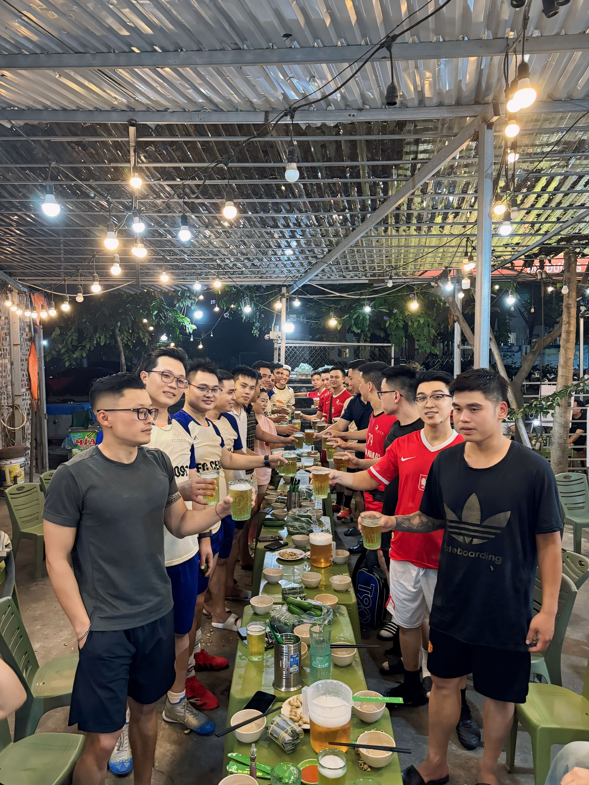 Sau trận đấu, cả hai đội bóng đã có một bữa liên hoan chúc mừng. Đây là dịp để các cầu thủ cùng nhau tận hưởng không khí vui vẻ, đoàn kết sau những phút giây thi đấu đầy thăng hoa.